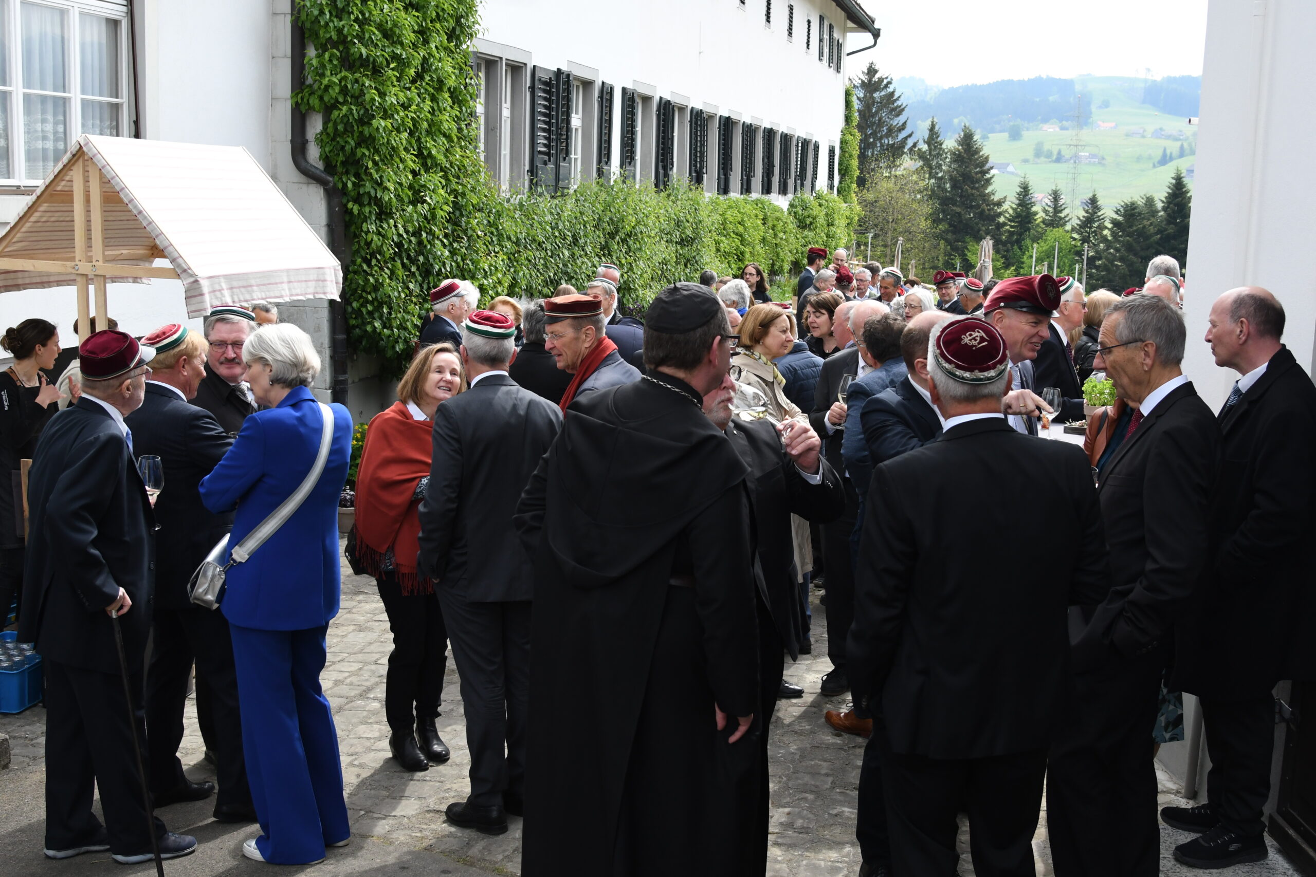 Nach dem Festgottesdienst trafen sich die Gäste zum Apéro im Klostergarten und danach zu einem gemeinsamen Mittagessen im Festzelt. Dieses wird noch länger stehen bleiben, für die “Bauspini”, das Dankessen an die beteiligten Handwerkerinnen und Handwerker, sowie für das grosse Kirchenfest mit breitem Rahmenprogramm am Samstag, 25. Mai, zu dem die ganze Bevölkerung herzlich eingeladen ist. Auch dann wird Bischof Markus Büchel den Festgottesdienst feiern.