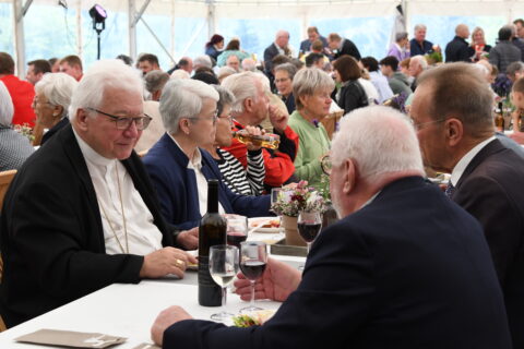 Das Festzelt war in den letzten Wochen mehrfach Schauplatz von Begegnungen und Feiern. Die beteiligen Handwerker waren zu einem Fest geladen und Bischof Markus Büchel weihte vor zwei Wochen den neuen Altar der renovierten Klosterkirche Wonnenstein in einer Feier mit den Mitgliedern des Vereins Kloster Maria Rosengarten Wonnenstein und mit den Sponsoren ein. Die Altherren der Bodania sowie verschiedene Stiftungen, Firmen oder weitere Spender haben gemeinsam die Kosten von vier Millionen Franken für die Kirchenrenovation getragen. /sr